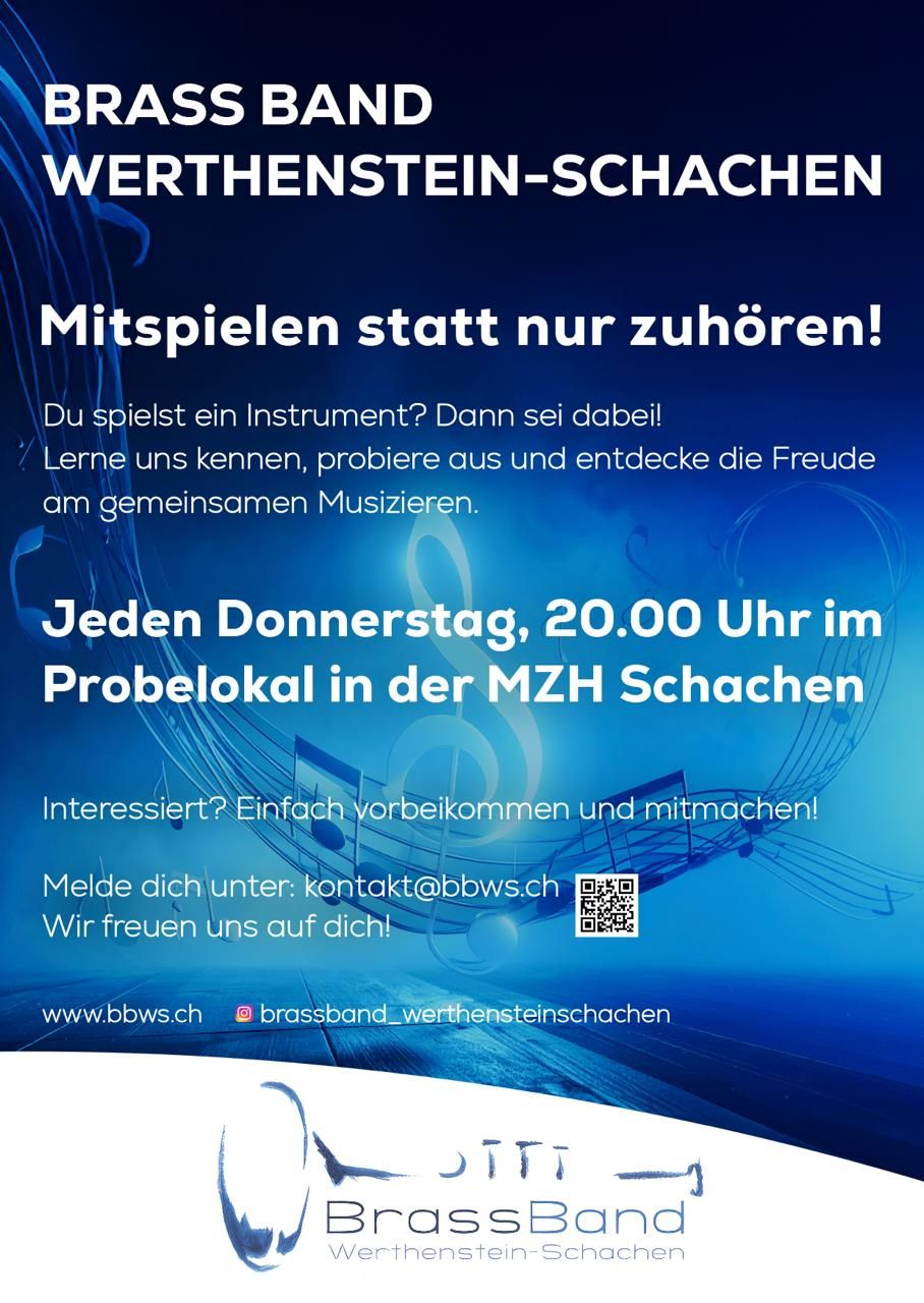 Jeden Donnerstag, 20:00 Uhr im Probelokal in der MZH Schachen